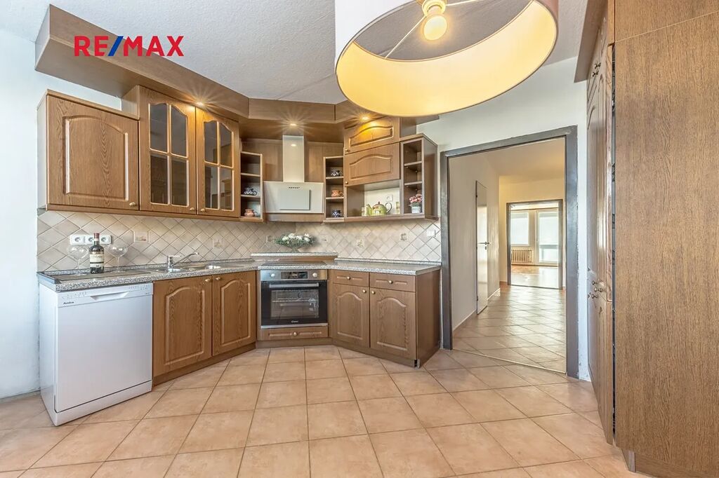 Byt má čtyři samostatné pokoje a velkou kuchyň s jídelnou, ideální pro rodinu, která hledá pohodlné bydlení s dostatkem prostoru a soukromí.