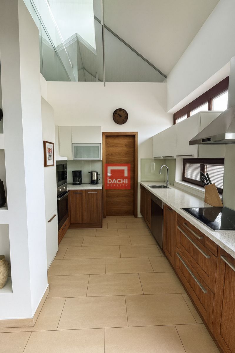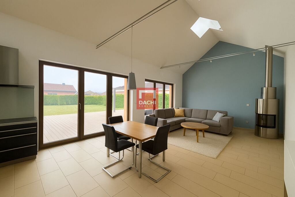 Nabízíme k prodeji zděnný rodinný dům v nadstandardním provedením, dispozičně 6+kk o užitné podlahové ploše 220m a se zahradou 847m. Dům je zateplený, přízemní, s terasou, bazénem a dvojgaráží. Na zahradě se nacházejí okrasné stromky a keře, bazén a také vlastní kopaná studna. Na sedlové střeše je betonová taška, okna jsou plastová, trojskla, všechna okna jsou vybavena předokenními elektrickými žaluziemi, které přispívají k tepelnému komfortu. Vytápění je kombinovaným plynovým kotlem do podlahového topení v celém domě. V domě je velký obývací pokoj, který je propojen s kuchyní a dále 3 samostatné pokoje (ložnice). Další dvě místnosti jsou těsně před dokončením. Jedna koupelna s vanou i sprchovým koutem a dále dvě samostatné WC. Šatna, komora a technická místnost jsou samozřejmostí. Podlahy jsou z prken z masivního dřeva, dlažba, nebo koberce. Dům byl kolaudován v roce 2012.