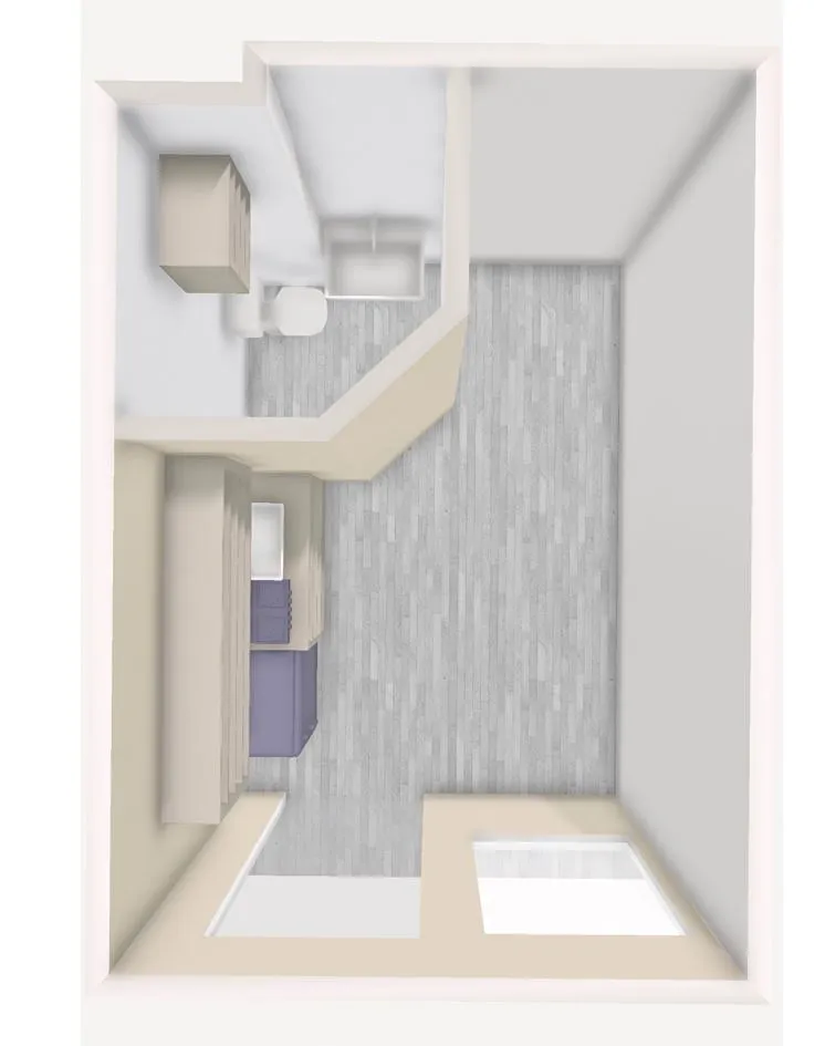 Pro lepší využití prostoru je v bytě realizováno dřevěné mezipatro. Kuchyňská linka je vybavena lednicí, elektrickým dvojvařičem a digestoří. Plnohodnotná koupelna disponuje sprchovým koutem, umyvadlem, bojlerem na ohřev vody a WC.