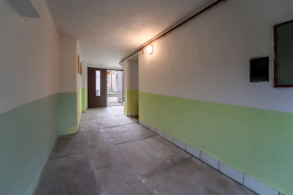 * Vstup do domu vede zastřešeným průjezdem (dříve parkování auta – dnes úzké pro moderní vozy).