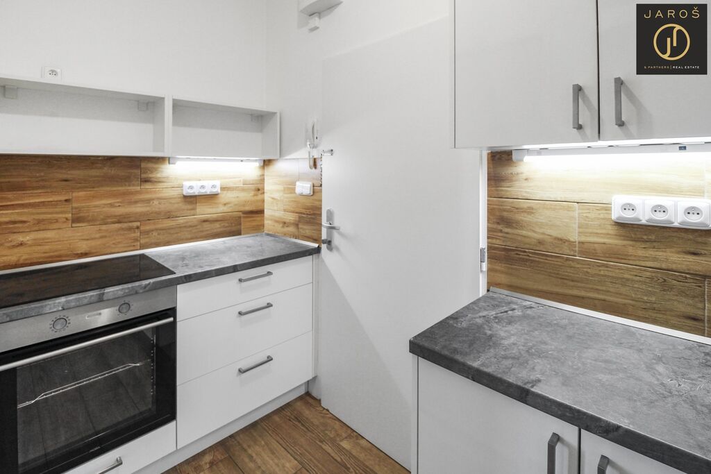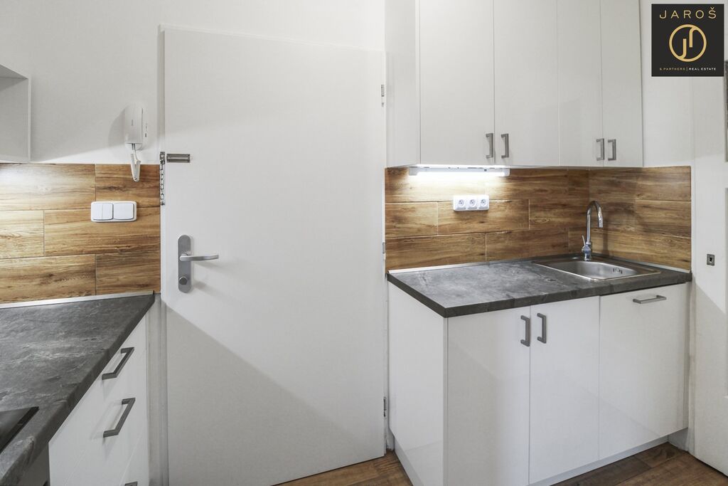 Nabízíme Vám k pronájmu byt 1kk o velikosti 30m2 po rekonstrukci. Byt se nachází ve 3. patře udržovaného domu s výtahem v ulici Prachnerova, minutu chůze od zastávky Klamovka. V okolí bytu je veškerá občanská vybavenost a o pár tramvajových zastávek dále se nachází stanice metra B- Anděl. Samotný byt se skládá ze vstupní chodby s kuchyňským koutem, hlavní místnosti, koupelny se sprchou a oddělené toalety. K bytu náleží také sklep. Byt je k nastěhování ihned a nájemné je 14 000,- + zálohy na služby (2874,-/1os., 3618,-/2os.) + přepis elektřiny na nájemce. Majitel požaduje kauci ve výši 25 000,- a provize RK činí 1x nájemné plus DPH.