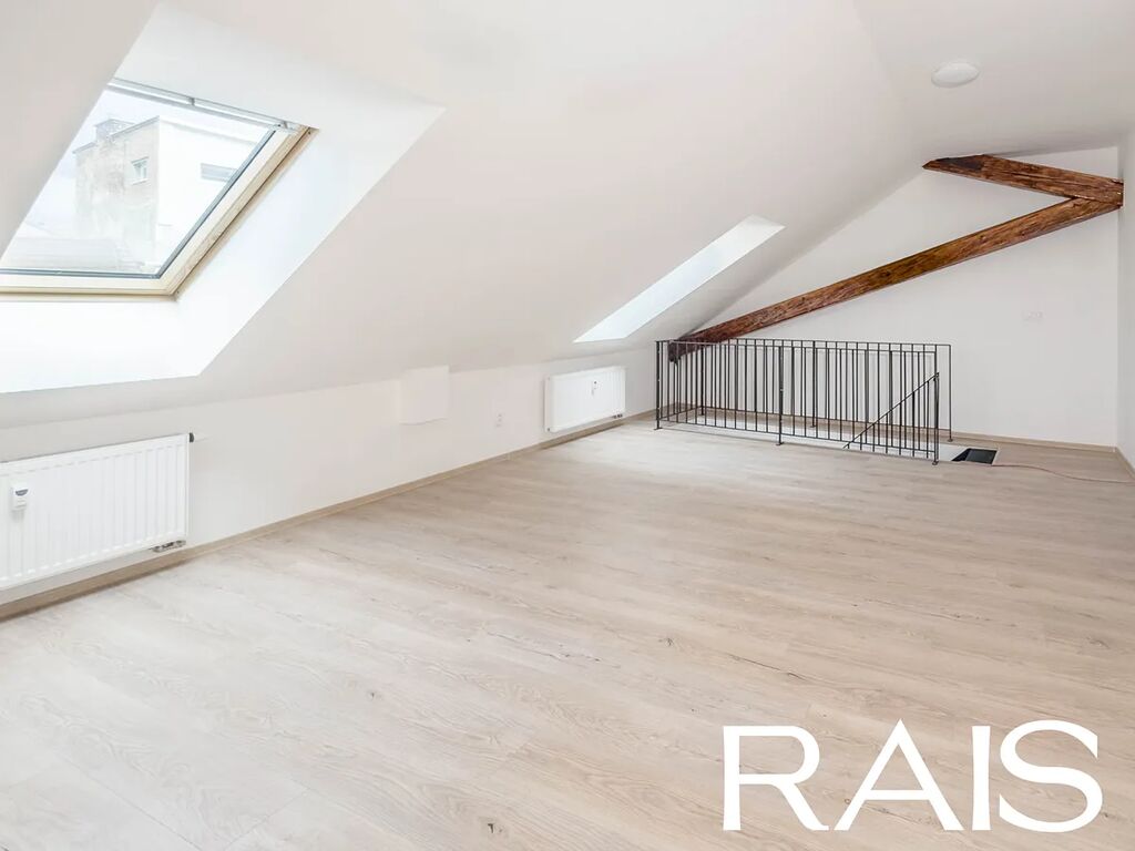 Byt se nachází ve 3. a 4. nadzemním podlaží nadherne budovy a nabízí celkovou podlahovou plochu 55 m². Prostor je chytře rozdělen do dvou úrovní – spodní patro tvoří otevřený obytný prostor s obývacím pokojem a koupelnou, horní patro pak slouží jako ložnice s dostatečným soukromím a klidnou atmosférou. K bytu dále náleží sklepní kóje o velikosti 2,3 m². Koupelna je vybavena mimo jiné kvalitními výrobky značky Grohe.