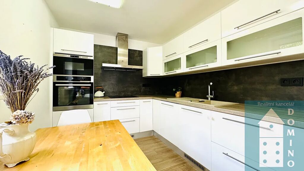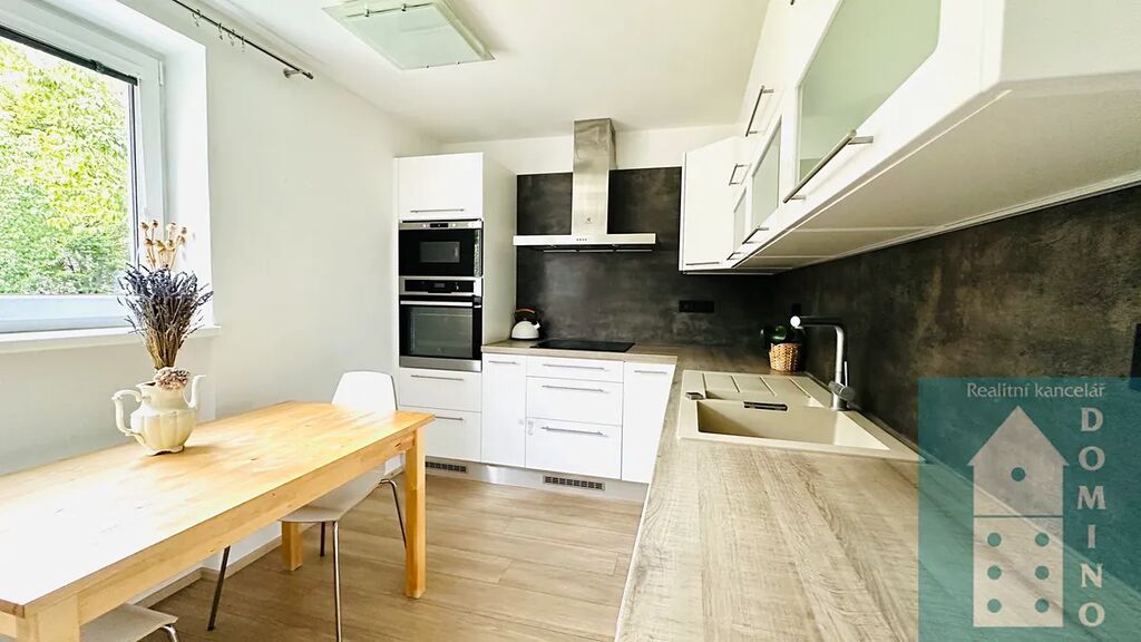 - kuchyně – zde byla vybudovaná krásná kuchyňská linka včetně veškerých spotřebičů i myčky, kde se vám bude příjemně vařit, je zde rovněž dostatek místa na jídelní kout.