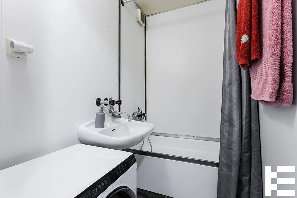 Pokoj s kuchyňským koutem má podlahovou plochu 32,14 m². Výhodou je samostatná toaleta (0,88 m²). Koupelna: 2,21 m² vše původním stavu.
