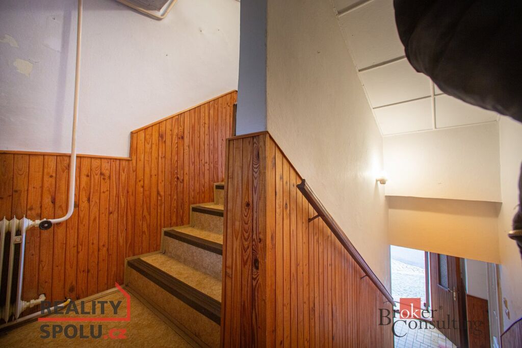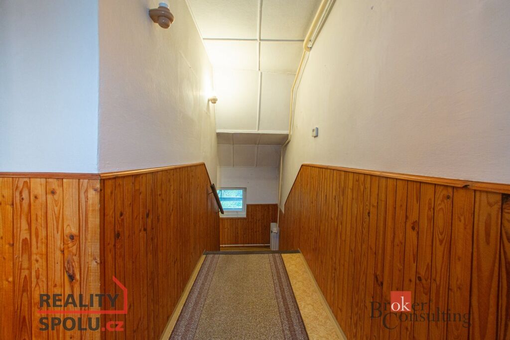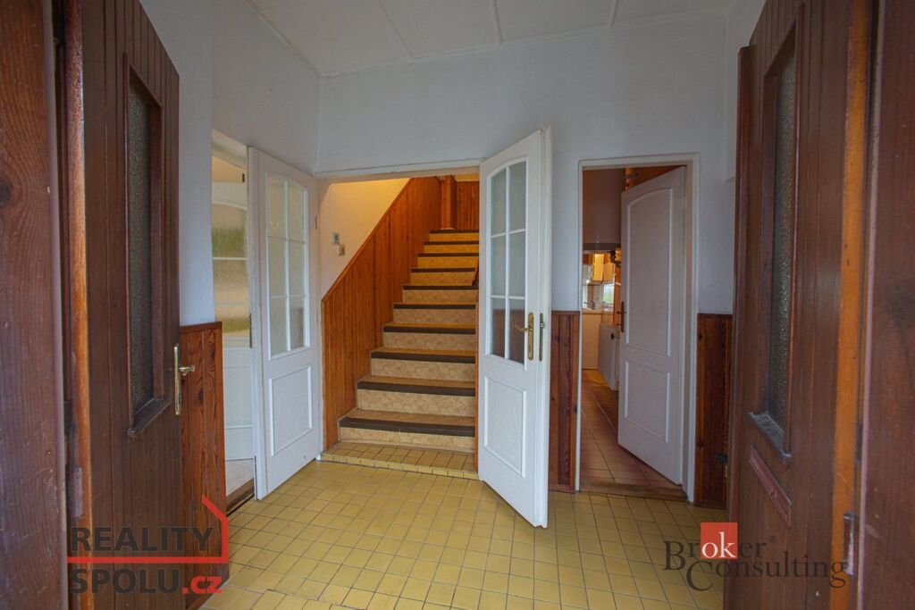 V přízemí se nachází kuchyně, obytný pokoj a vstup do garáže, dílny a skladu.