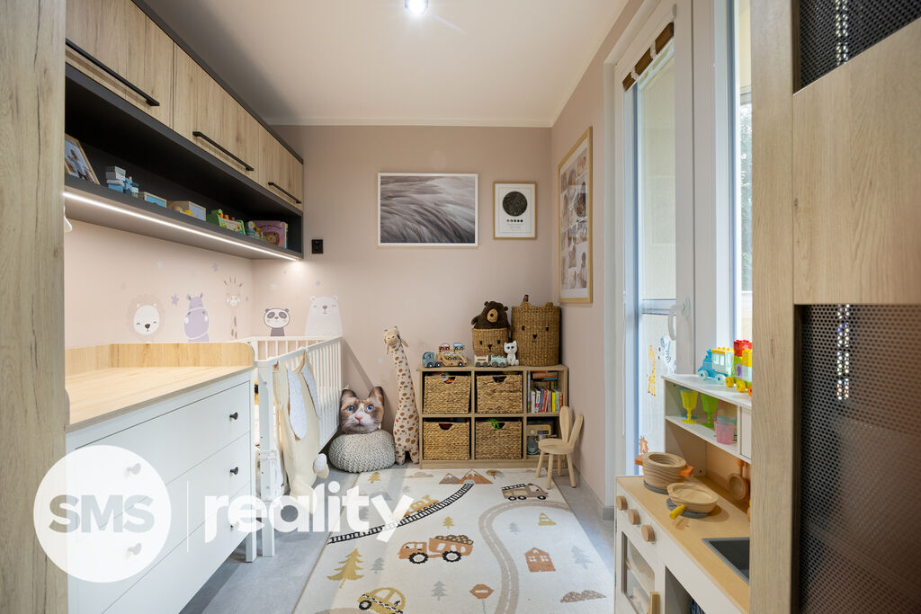 Byt nabízí dva samostatné pokoje. Dětský pokoj s přímým vstupem na prostornou zasklenou lodžii o velikosti 6 m² lze dle potřeby upravit na pracovnu či pokoj pro hosty. Prostor zde umožňuje i instalaci vestavěné skříně s výklopnou postelí.
