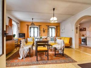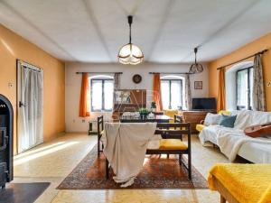 O teplo se starají krbová kamna a elektrické přímotopy, které dodávají interiéru příjemnou atmosféru.
