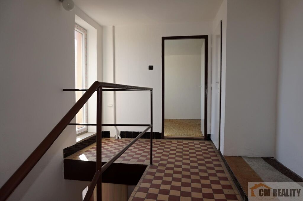 Dům je řadový koncový s vjezdem na pozemek. Dům je o dispozici 4+1. V přízemí domu je obývací pokoj 23 m2, ložnice 19 m2, kuchyně s jídelnou 18 m2, koupelna a samostatné WC. V patře jsou dvě ložnice ( 16 a 19 m2) a půda, kterou lze přestavět na obytnou část. Dům je částečně podsklepen, v suterénu se nachází dílna a garáž, s vjezdem ze dvora.
