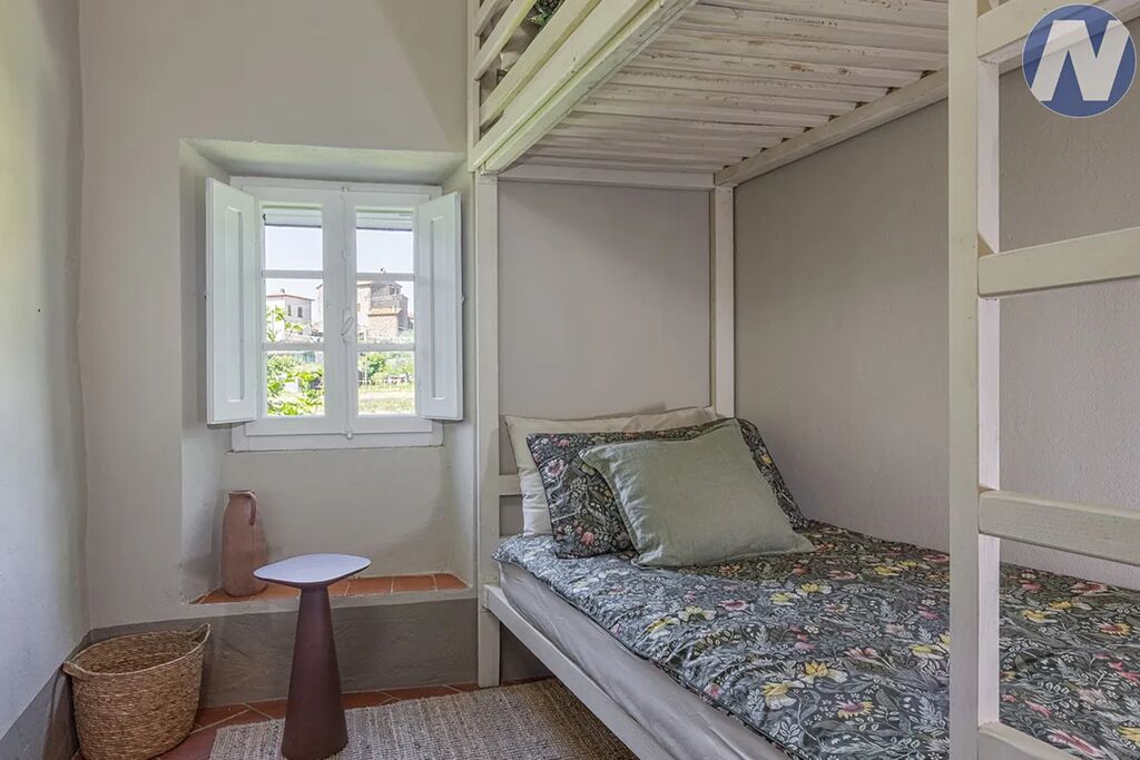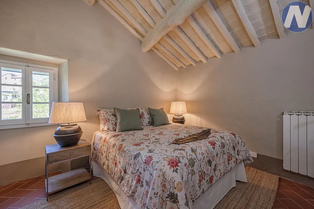 Mlýn o užitné ploše 150 m² je vkusně zrekonstruovaný, harmonicky kombinuje autentické toskánské materiály, jako jsou kamenné zdi, terakotové podlahy a odhalené dřevěné trámy, s veškerým komfortem moderního bydlení. V přízemí je světlá a prostorná kuchyň a dva velké pokoje a koupelna. Po schodech do prvního patra vystoupíte do obývacího pokoje s tradičním krbem, který je ideálním místem pro relaxaci a vychutnávání si sklenky vína. Zde se nachází také druhá koupelna a dvě ložnice, z nichž jedna má přímý vstup na malou terasu, a útulné mezipatro, které lze využít jako třetí ložnici nebo domácí kancelář. K domu patří také nezávislá přístavba s historickou pecí na dřevo, která dodává místu nezaměnitelný rustikální šarm.