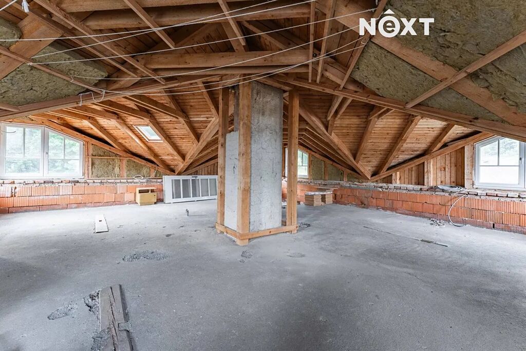 Podkroví domu díky atypické střešní konstrukci nabízí další prostor, který lze využít například pro pracovnu, hernu, nebo další obytné místnosti.