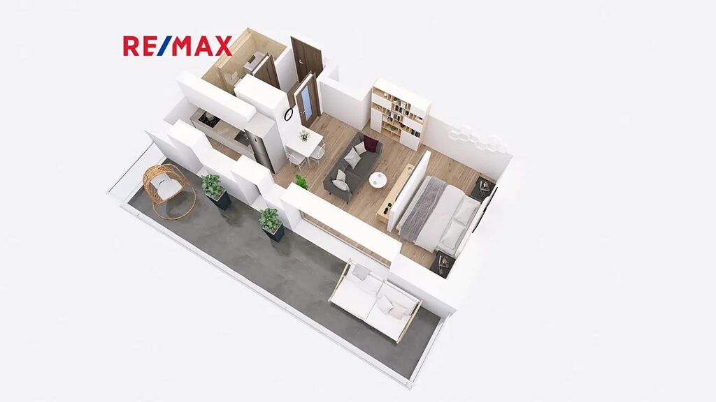 Jedná se o bytovou jednotku 1+kk o podlahové ploše 53 m2 s lodžií (16 m2) ve 2. patře ze 3. NP, orientovanou na JV stranu. Dispozičně je členěna na prostornou obývací místnost s vybavenou kuchyňskou linkou (elektrický sporák, digestoř), chodbu a sociální zařízení. Po celé ploše bytu byla položena plovoucí podlaha a dlažba. Osvětlení je řešeno formou LED světel, které lze regulovat dálkovým ovladačem. Termostatem, který je umístěný v obývací místnosti, lze nastavit teplotu v jednotce.