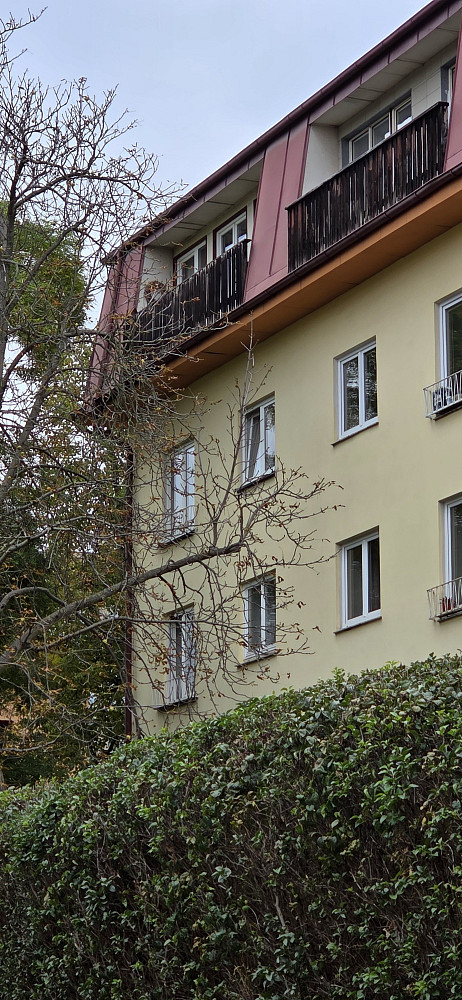 Dům v dobrém stavu, fasáda, plastová okna, udržované společné prostory a chodby.
