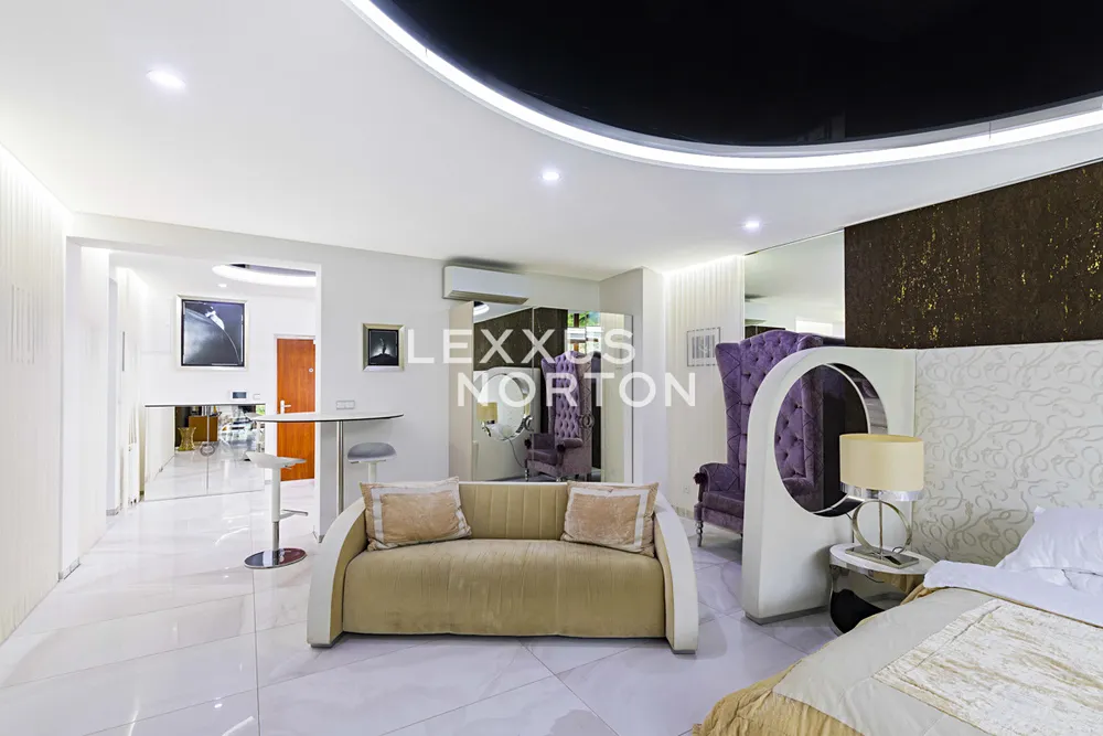 Byt je zařízený a k jeho vybavení navíc patří klimatizace, masážní vana, bidet, toaleta, sedací souprava, postel, televizní stolek a televize. K vybavení domu patří fitness a také sauna.
