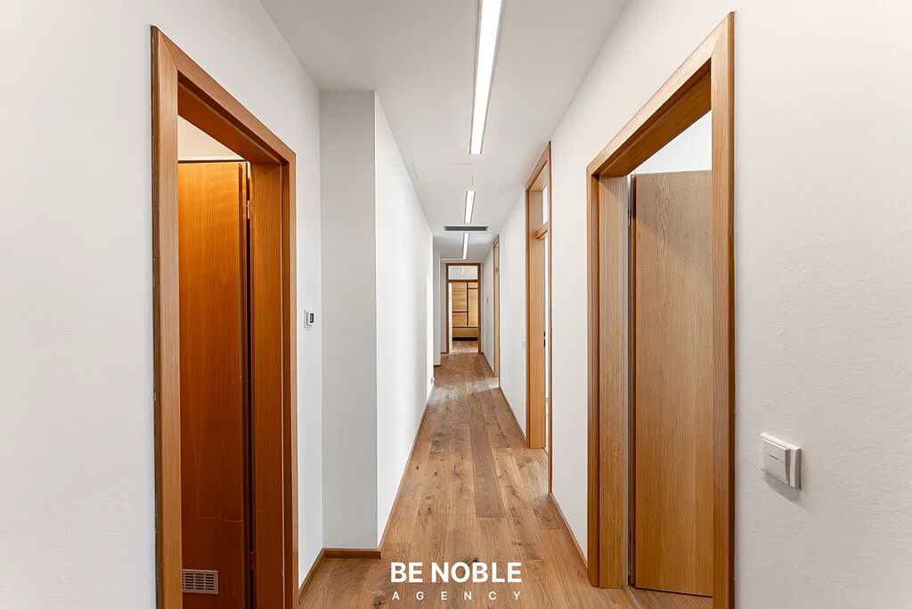 Vysoké stropy a velká okna po celé jižní straně zajišťují maximální prosvětlení a úchvatný výhled do zeleně i na panoramata Prahy 5.