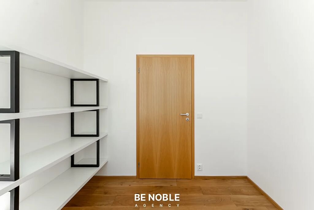 Byt má přímý vstup ze soukromého nádvoří určeného pouze rezidentům. Už při vstupu zaujme velkorysá předsíň s vestavěným nábytkem (10,5 m²), která ústí do dominantního obytného prostoru o rozloze 60,2 m². Ten tvoří srdce celého bytu – vzdušný obývací pokoj s krbem, místem pro knihovnu, vinotéku i pohodlné posezení.