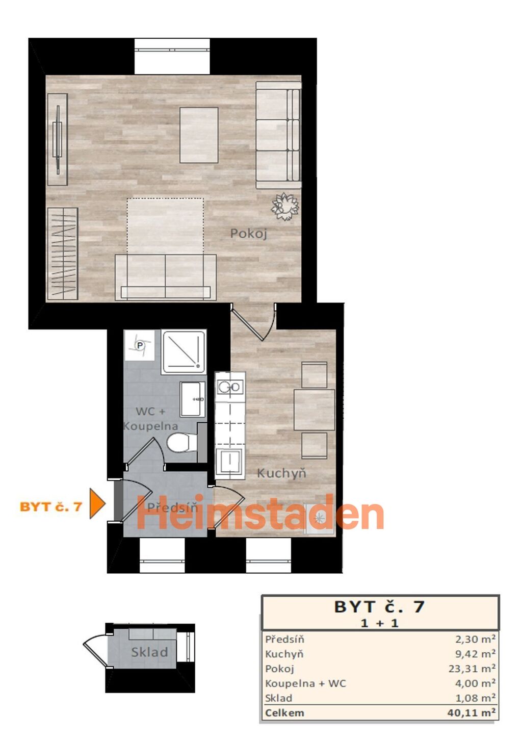 Byty o dispozicích 1+1 jsou laděny do současného, stylového designu. Nechybí zde kuchyňské linky s vestavěnými spotřebiči, koupelny s nadčasovými obklady či jednotné plovoucí podlahy spojující a prosvětlující celý prostor.