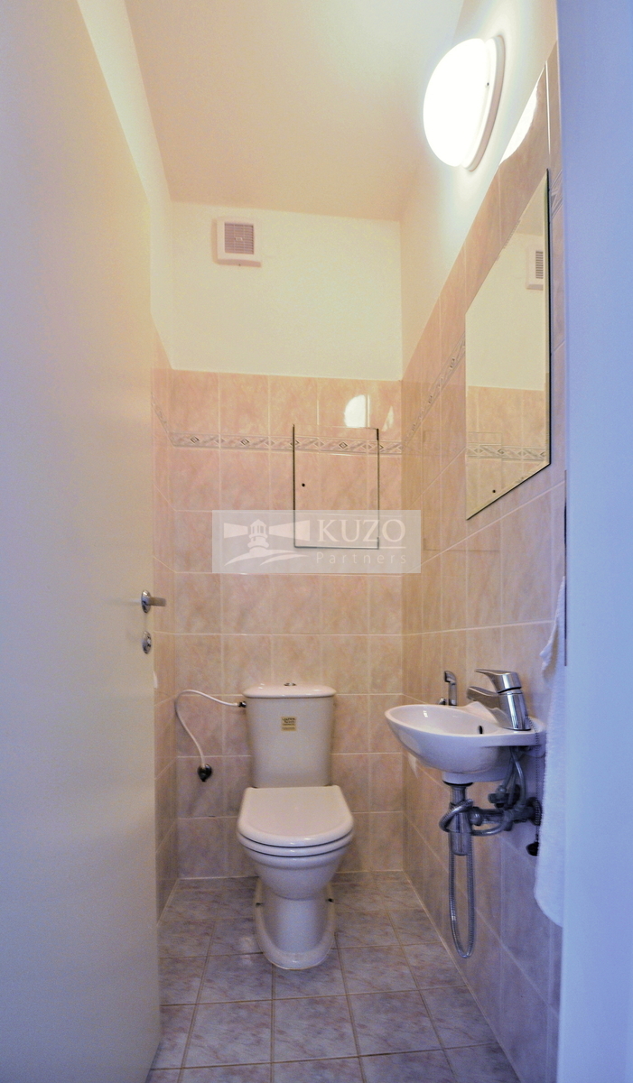 Interiér je vzdušný, světlý a provedený ve vysokém standardu. Kuchyňská linka z masivu je vybavena značkovými spotřebiči: sklokeramická varná deska, digestoř, elektrická trouba, myčka, mikrovlnná trouba a lednice s mrazákem. Najdete zde také veškeré potřebné nádobí a náčiní.