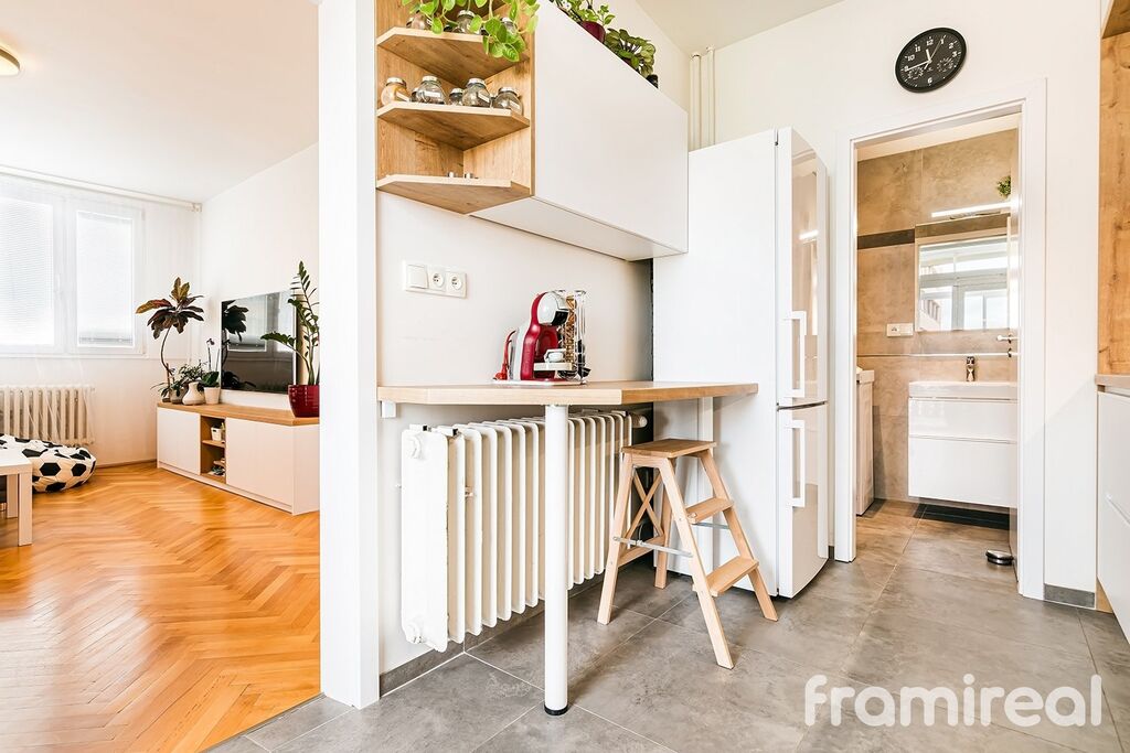 Dispozice zahrnuje dětský pokoj, ložnici a obývací pokoj, díky čemuž je byt ideální pro mladou rodinu. Okolí nabízí veškerou občanskou vybavenost, spoustu zeleně i výbornou dopravní dostupnost do centra města.