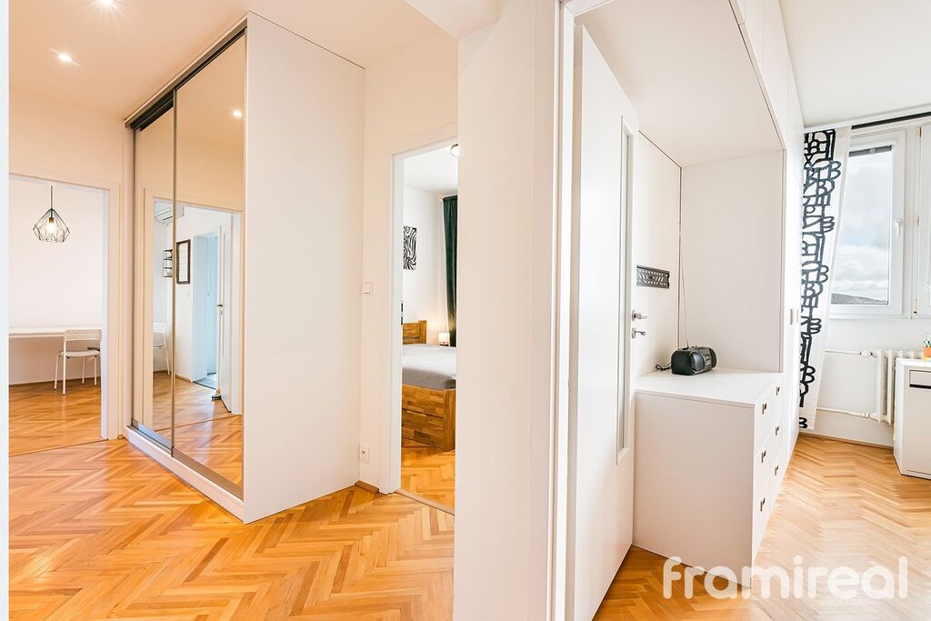 Byt je částečně vybaven – k dispozici jsou vestavěné skříně, pohovka, TV a kompletně vybavená kuchyňská linka se spotřebiči na míru. Po domluvě lze ponechat i další vybavení. O komfortní bydlení se postará klimatizace, praktická komora a lodžie s parádním výhledem na město a okolní zeleň, která přímo vybízí k odpočinku.