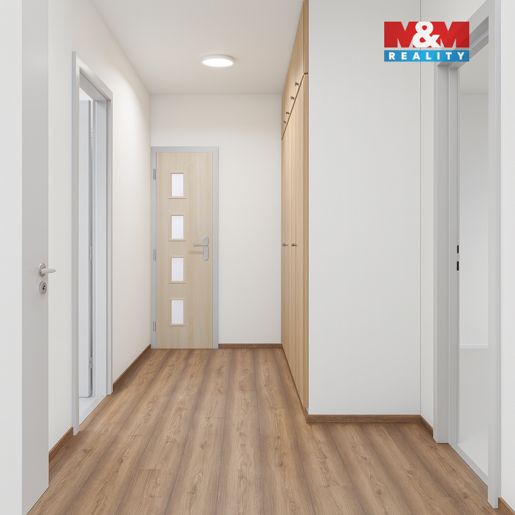 Vstupní chodba poskytuje dostatek úložného prostoru. K bytu náleží sklepní kóje a zasklená lodžie – ideální místo pro relaxaci.