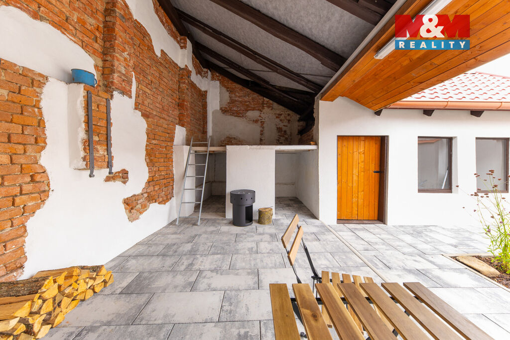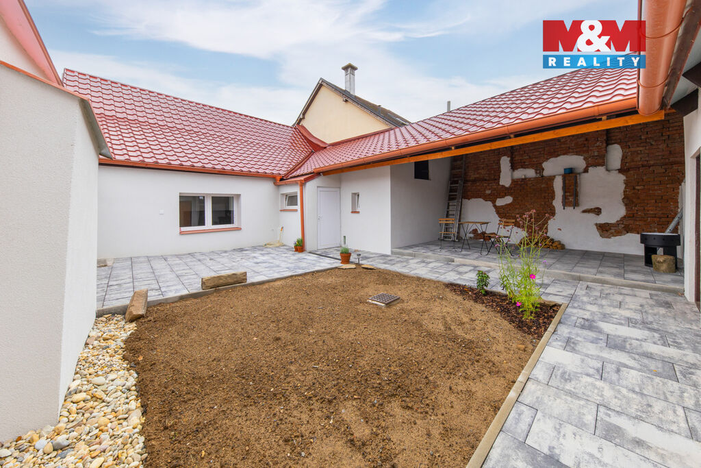 Chcete rodinný dům za cenu bytu? Nabízíme k prodeji velice pěkně řešený rodinný dům po kompletní rekonstrukci vnitřních a venkovních prostor. Dům má dispozici 2+1 a spoustu nebytových prostor. Nemá zahradu o kterou by se muselo starat, ale má odpočinkovou zónu: uzavřený dvůr (atrium) s trávníkem (zatím jen hlína) na který navazuje zastřešená pergola, která je součástí domu. Dále předzahrádku, kde je udělané parkovací místo, další může být uvnitř.