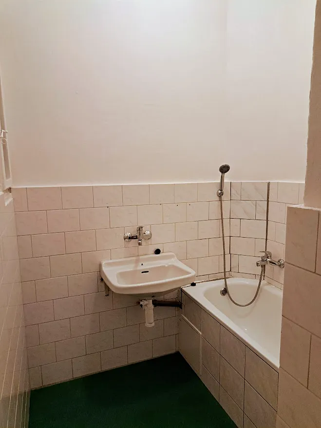 Vybavení: nezařízený byt, v předsíni zánovní linka, plynový sporák. V koupelně vana, nová revidovaná karma, okno. V menším pokoji je balkon do vnitrobloku na SV a komora;