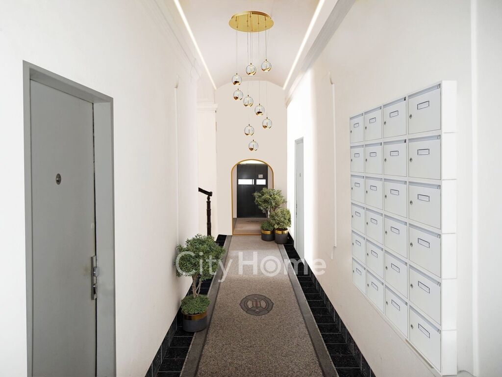 Byt se může pochlubit výjimečnou dvojí orientací – z jedné strany poskytuje pohled na zeleň parku Karlínského náměstí, z druhé strany pak klidný výhled do vnitrobloku.