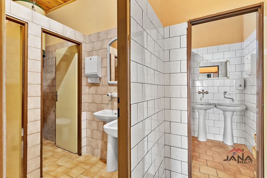 Zázemí pro personál zahrnuje šatny, sociální zařízení, skladové prostory a kancelář.