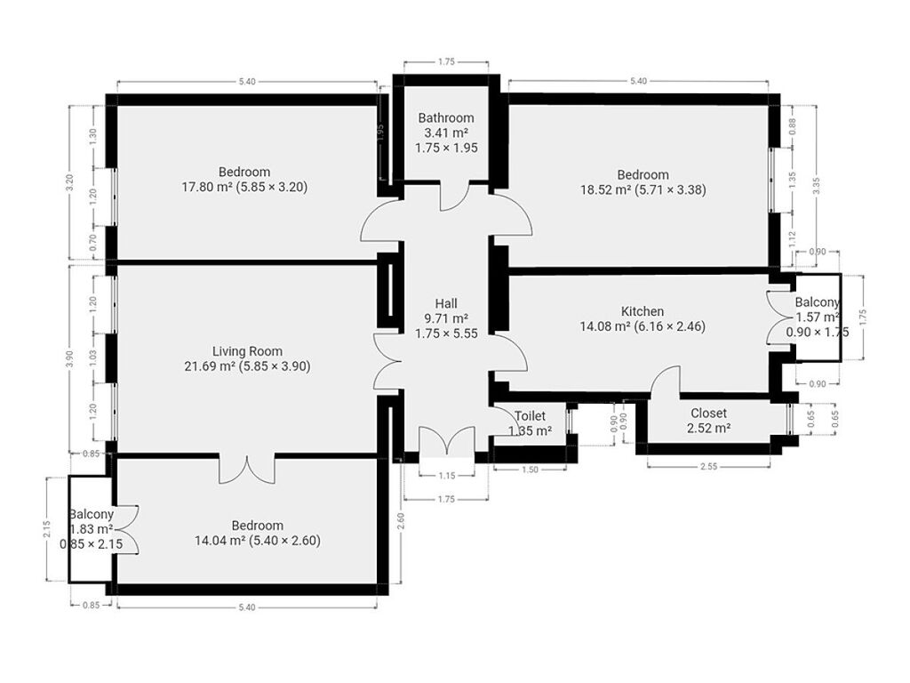 Byt je nezařízený, což dává novým nájemníkům možnost zařídit si interiér podle vlastního vkusu a potřeb. Moderní kuchyňská linka je vybavena lednicí s mrazákem, elektrickou troubou, myčkou, indukční varnou deskou, digestoří a dostatkem úložného prostoru. Obývací pokoj zaujme svou světlostí a velikostí – ideální pro vytvoření relaxační zóny i jídelního koutu. K dispozici jsou také tři samostatné pokoje, které mohou sloužit jako ložnice, dětský pokoj či pracovna. Koupelna je vybavena vanou a umyvadlem, toaleta je samostatná.
