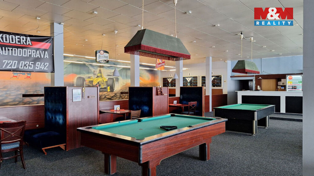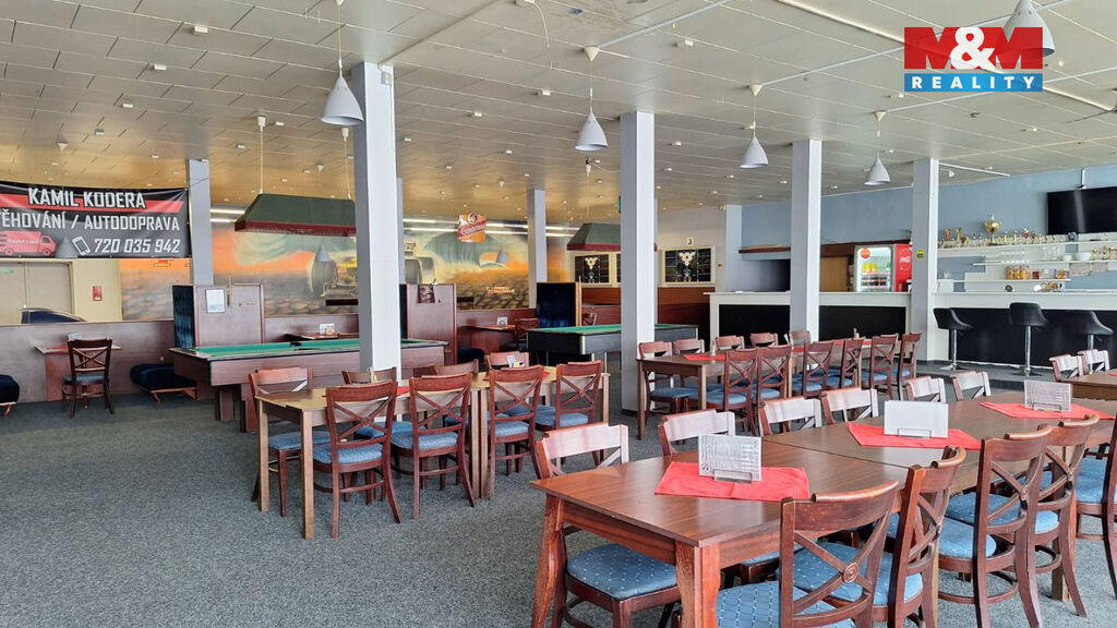 Nabízíme k dlouhodobému pronájmu prostory restaurace s bowlingem v IINP komerčního domu v České Lípě, včetně vybavení interiéru, stoly, židle, bowling. Na ploše 645 m2 jsou 3 bowlingové dráhy, 2 kulečníky, bar s výčepem, sociální zázemí s WC a sprchovým koutem. Skladová místnost v INP. Kapacita posezení až pro 80 osob. Budova je napojena na veřejnou kanalizaci a vodovod. Vytápění je řešeno kotlem na tuhá paliva, zajišťuje Pronajímatel. Cena pronájmu 15.000,- Kč + DPH je bez záloh energií, vody, elektřiny a topení cca 8.000,- Kč - 10.000,- Kč dle spotřeby. Vratná jistin 45.000,- Kč + DPH. Případná změna využití vítána, možná domluva. Objekt je napojen na bezpečností službu. Pro bližší informace volejte makléře a domluvte si prohlídku.. Doporučuji prohlídku. Volný ihned k pronájmu.