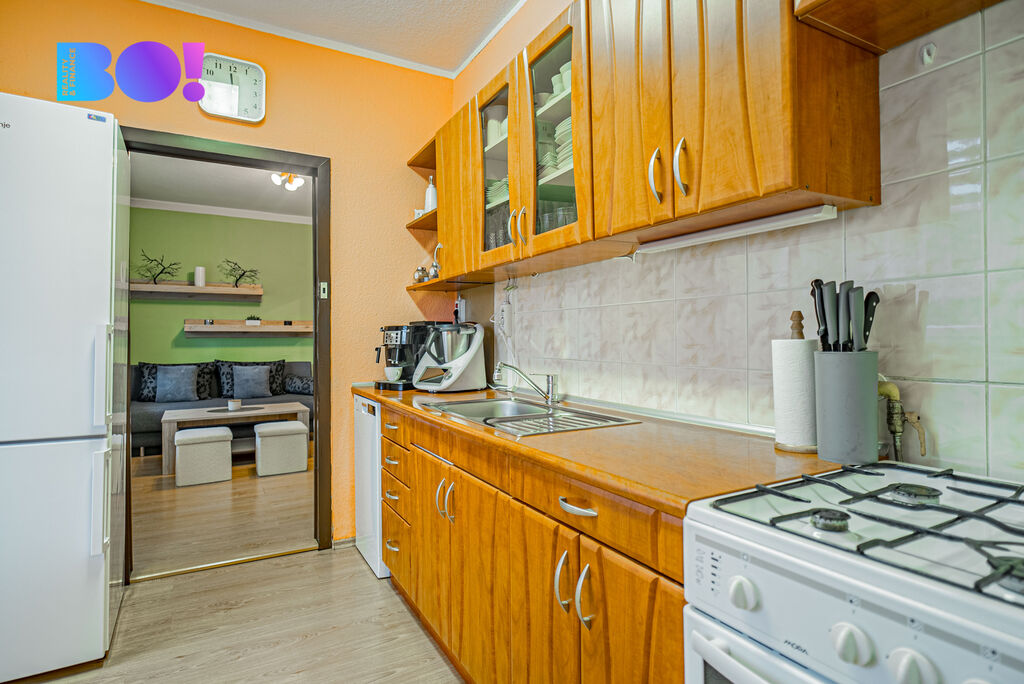 Byt je v původním, ale pečlivě udržovaném stavu – čistý, světlý a ihned obyvatelný. Dispozice potěší: pokoje nejsou průchozí, každý má své soukromí. Jeden ze tří pokojů plynule navazuje na lodžii, která nabízí příjemné posezení s výhledem do zeleně po celý rok. Kuchyně je prakticky řešená se zánovní kuchyňskou linkou a špíží, kterou ocení každý, kdo rád vaří a má rád pořádek. Koupelna a WC jsou oddělené, což zvyšuje komfort denního provozu. K bytu patří sklepní koje, praktické místo pro kola, sportovní výbavu či sezónní věci.
