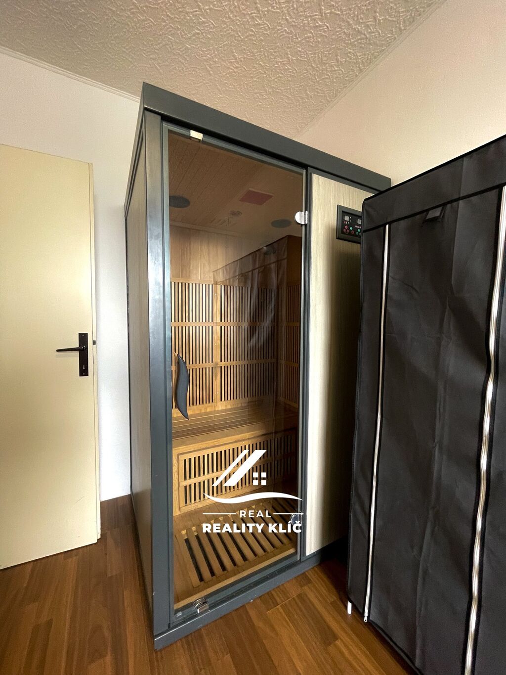 V kuchyni je linka se spotřebiči (plynový sporák s elektrickou troubou, digestoř), k dispozici je lednice s mrazákem a pračka. Byt je částečně vybaven a připraven k nastěhování. Součástí vybavení je také infra sauna, která nabízí pohodlný domácí relax.