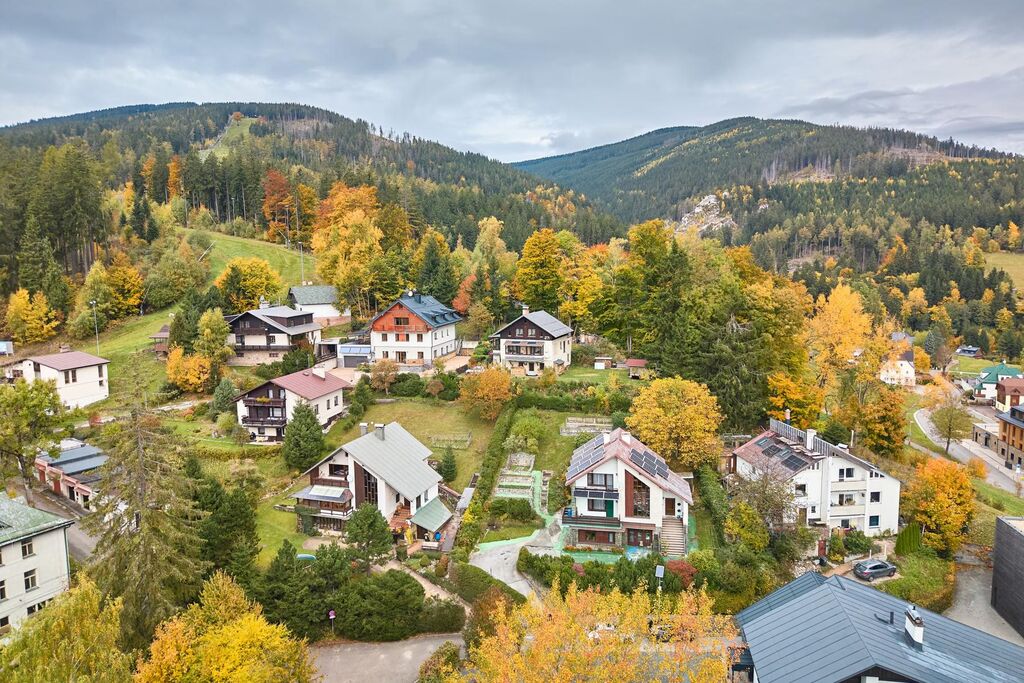 K prodeji nabízíme prostorný rodinný dům vystavěný ve výjimečné lokalitě horského střediska Janské Lázně, přímo u sjezdovky Protěž a pouhý 1 km od stanice kabinové lanové dráhy Černohorský Express na Černou horu.