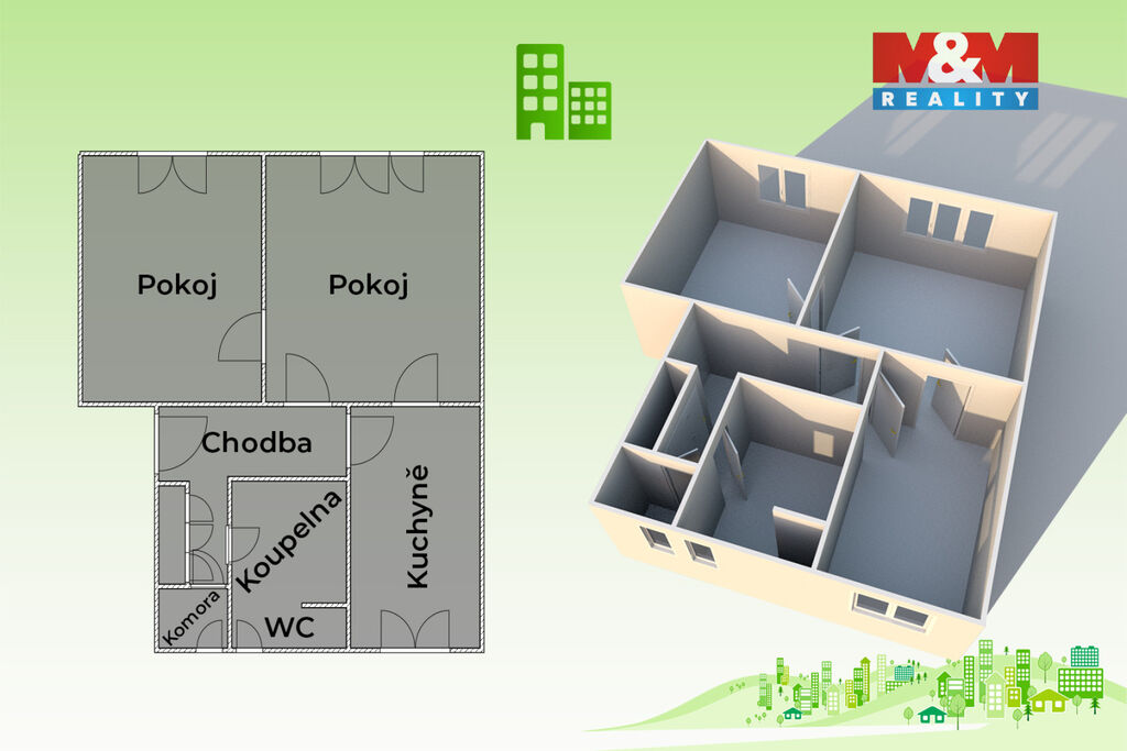 Nabízíme k prodeji byt 2+1 o užitné ploše 55 m² v klidné části Valašského Meziříčí na ulici Havlíčková. Byt se nachází ve 2. nadzemním podlaží domu s celkem 3 NP. Nemovitost je určená k rekonstrukci a je možné ji dispozičně změnit na 3+kk. Byt disponuje chodbou se vstupem z jedné strany do malé komory a do koupelny s WC a z druhé strany do kuchyně, obývacího pokoje a ložnice. Okna jsou plastová, na podlaze jsou parkety, dlažba a PVC. V kuchyni je plynový ohřívač - topení, v koupelně je elektrický ohřívač vody. K bytu náleží 2 sklepy, v domě jsou pak společné prostory - kočárkárna a sušárna. U domu je k užívání zahrada a malá zahrádka s možností pěstování zeleniny. Lokalita nabízí klidné okolí s dobrou dostupností do centra města. Ideální pro páry či menší rodiny. Rádi vám zajistíme výhodné financování.