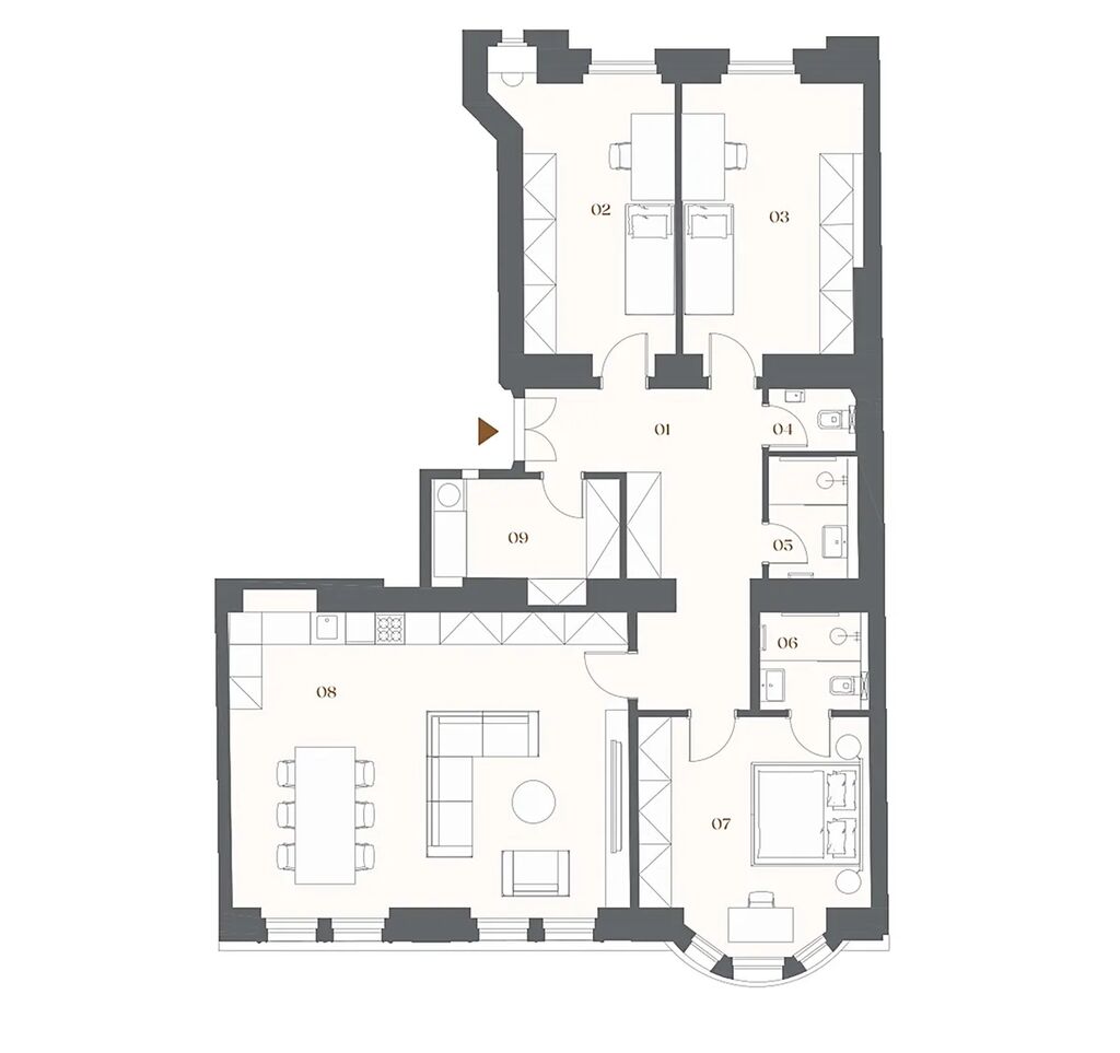 Jižně / Severně orientovaný byt o dispozici 4+kk a podlahové ploše 135,1 m² je součástí nového rezidenčního projektu Bělehradská 29, který vzniká kompletní rekonstrukcí novobarokního činžovního domu z roku 1910. Nachází se na pomezí Vinohrad a Nuslí – v živé čtvrti s kavárnami, službami i zelení, jen minutu od tramvajové zastávky Nuselské schody. Dokončení je plánováno na 3. čtvrtletí roku 2026. Půdorys bytu v 2. podlaží zahrnuje obývací pokoj s přípravou na kuchyni, tři ložnice, vstupní chodbu, praktickou komoru, koupelnu se sprchovým koutem a samostatnou toaletu. K jednotce náleží také sklepní kóje. Vybavení zahrnuje dubové podlahy, dřevěná špaletová okna s dvojsklem, elegantní interiérové dveře, koupelnu v nadčasovém designu se sanitou značek Laufen a Grohe a decentně řešená otopná tělesa a elektroinstalaci, která neruší celkový výraz interiéru. Byt bude dokončen v provedení fit out – připravený k okamžitému nastěhování.