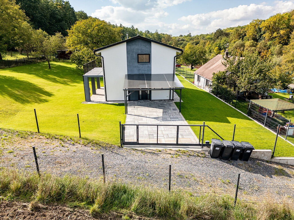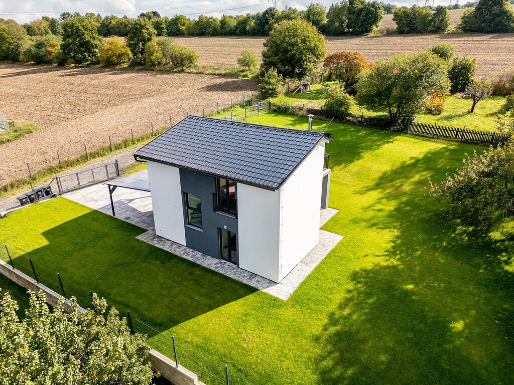 Nabízíme vám k prodeji zcela nový, samostatně stojící rodinný dům o dispozici 4+kk a užitné ploše 120 m², který se nachází v klidné části Prahy – Čimic, v těsné blízkosti malebného Drahanského údolí. Dům stojí na velkém pozemku o rozloze 1316 m² a nabízí tak dostatek prostoru pro zahradu, terasu, bazén či další rodinné zázemí podle vašich představ.