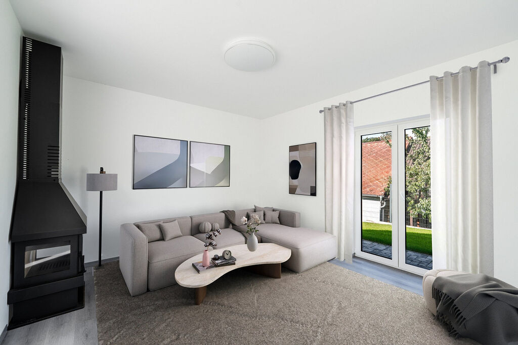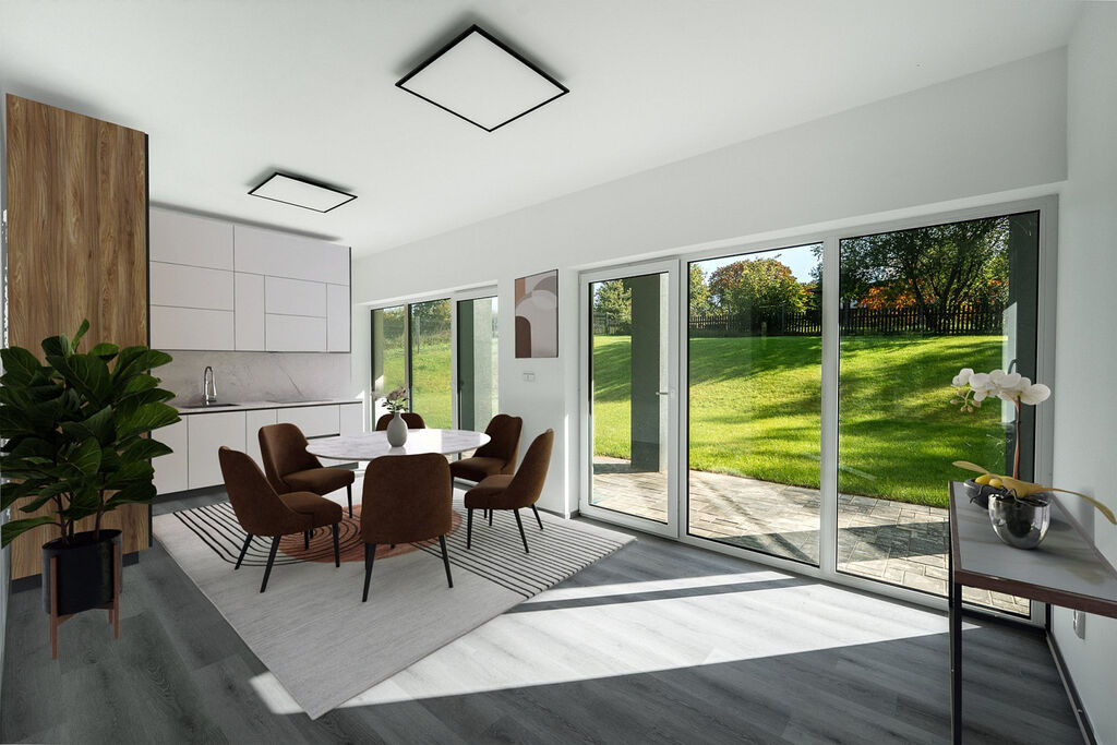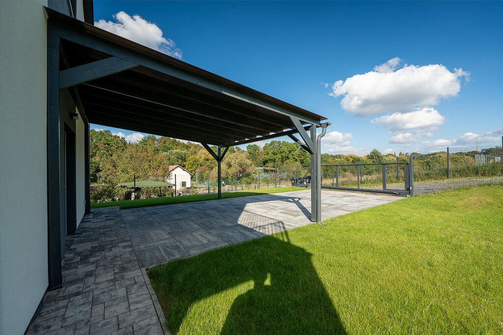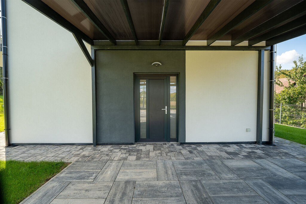 Tento moderní dům byl postaven s důrazem na kvalitu, pohodlí a energetickou úspornost, s použitím vysoce kvalitních materiálů. V celém interiéru je instalováno podlahové vytápění, samozřejmostí je také klimatizace, která zajišťuje příjemné prostředí po celý rok. Díky promyšlenému dispozičnímu řešení působí dům velmi prostorně a svěže, s dostatkem denního světla a přímým propojením obytné části se zahradou.