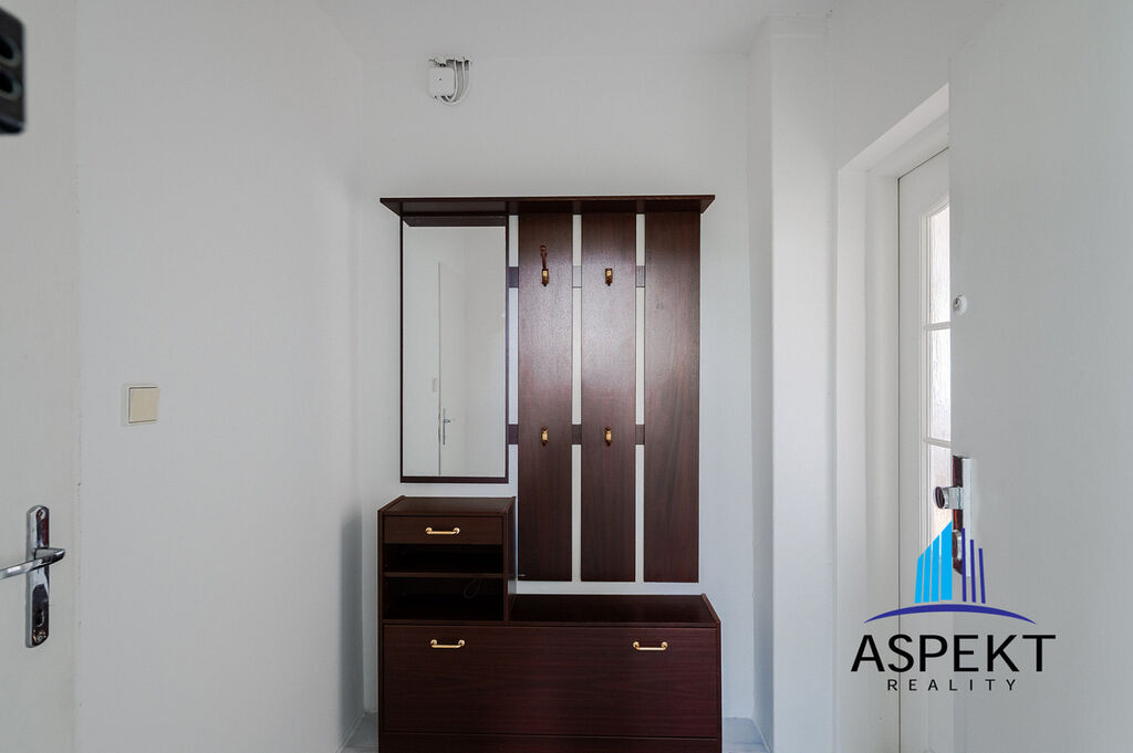 Dispozičně byt zahrnuje obývací pokoj s kuchyňským koutem, dvě samostatné ložnice, koupelnu s vanou a pračkou, toaletu a praktickou komoru. V obývacím pokoji je k dispozici klimatizace, která zajišťuje příjemné bydlení i v horkých letních dnech. Kuchyně je vybavena spotřebiči, včetně sporáku, trouby, digestoře, lednice a stolu se židlemi.
