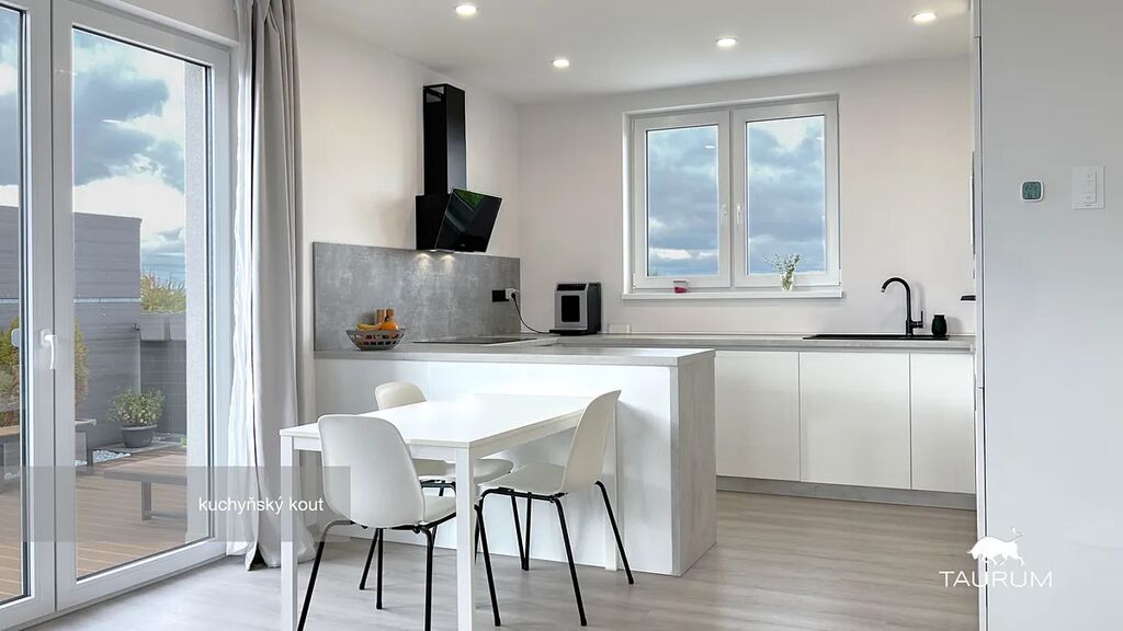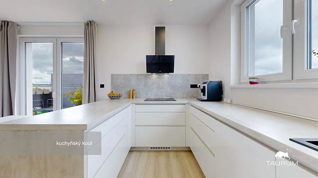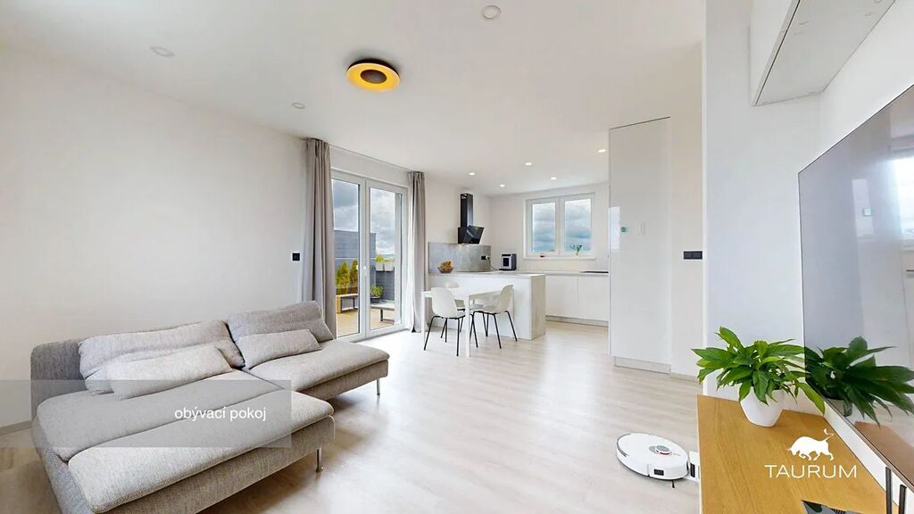 Byt je vybavený kuchyňskou linkou se zabudovanými spotřebiči značky Electrolux, pracovní deskou Egger, digestoří s filtrem a indukční varnou deskou. Byt má velmi moderní styl, je vzdušný a vkusně vybavený.