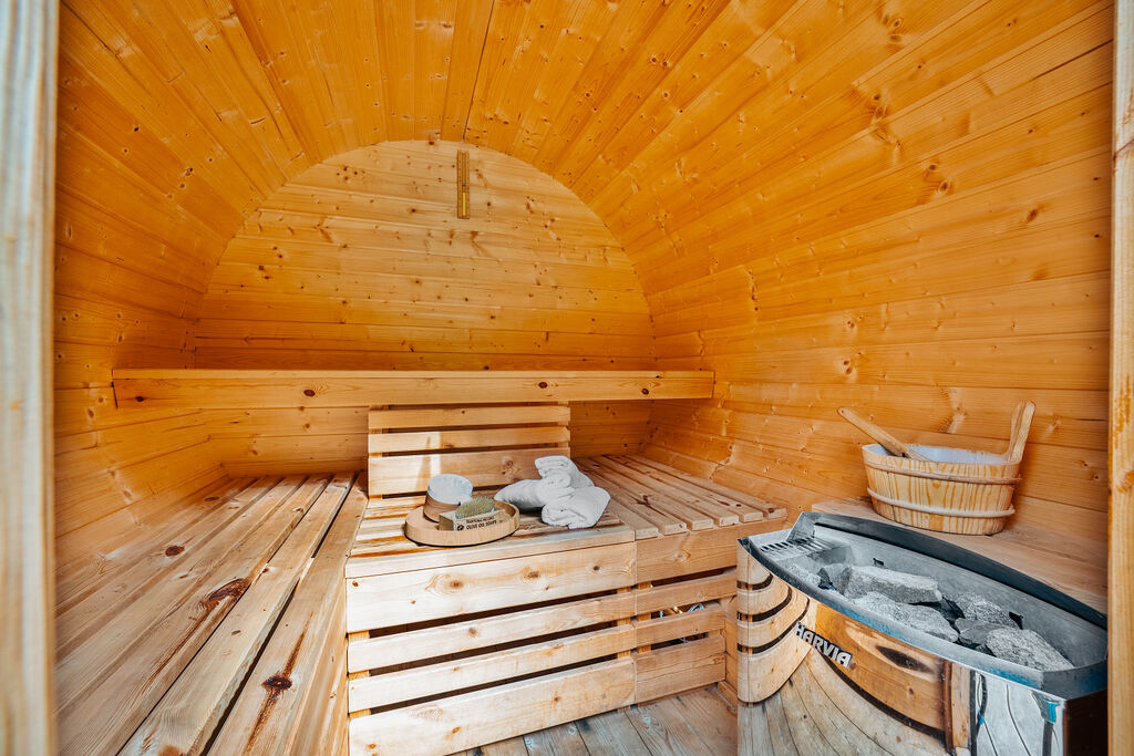 Sudová sauna hned vedle chalupy – ideální po výletech i v chladných dnech.