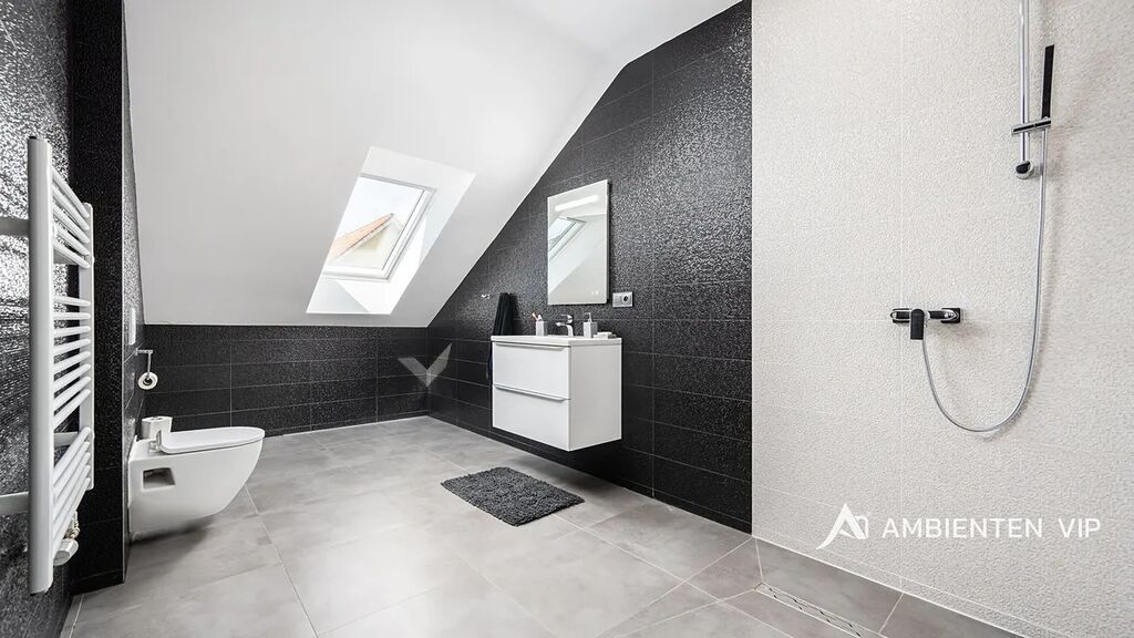 Celý objekt je napojen na fotovoltaickou elektrárnu o výkonu 10 kWh s možností rozšíření až o dalších 30 kWh. Přebytky elektřiny jsou uchovány v bateriích. V každém detailu je patrné, že nemovitost byla navržena s důrazem na funkčnost a komfort – od oddělených technických zón až po přípravu pro další využití prostor.