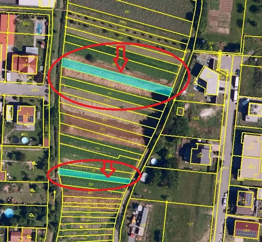 Jedná se o p.č. 669 vedená jako orná půda o celkové výměře 346 m2 a p.č. 679 vedená jako orná půda o celkové výměře 143 m2.