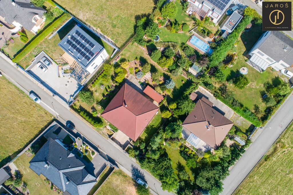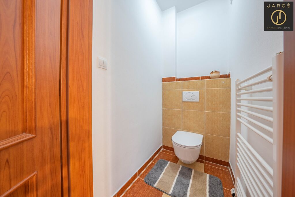V přízemí se nachází samostatná bytová jednotka s kuchyní, koupelnou, toaletou a dalším pokojem – vhodná jako zázemí pro hosty, kancelář či menší provozovnu. V patře najdete koupelnu, toaletu, dva samostatné pokoje, jeden průchozí pokoj, prostorný obývací pokoj s lodžií a kuchyň s přímým vstupem na zahradu.
