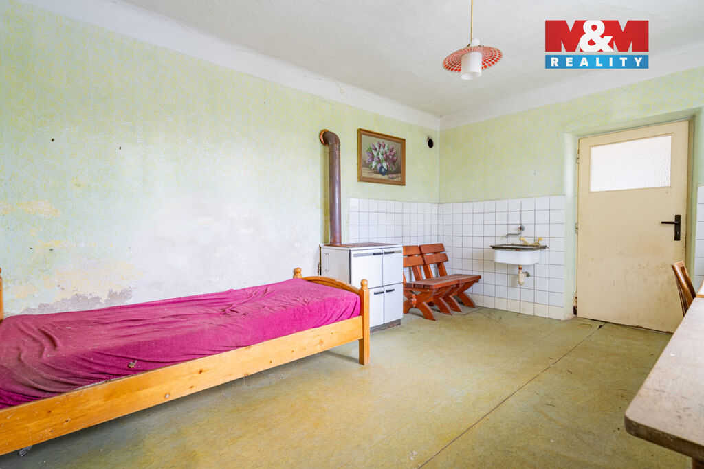 Nabízíme k prodeji dům v původním stavu, určený ke kompletní rekonstrukci. Objekt o užitné ploše 80 m² nabízí dispozici dvě obytné místností a jednu místnost vhodnou jako kuchyně, dále sklep, verandu a další místnost vhodnou pro vybudování koupelny. Celková plocha parcely včetně zastavěné plochy 992 m².