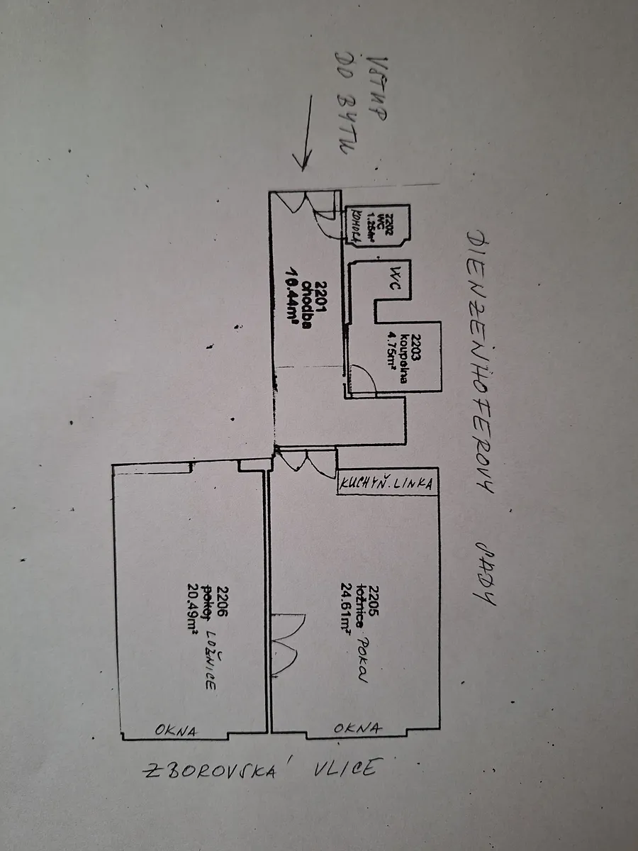 Nabízíme k pronájmu byt cca 62 m2 ve 4. patře činžovního domu na adrese: Dienzenhoferovy sady 1102/1, Praha 5, 150 00, Smíchov.
