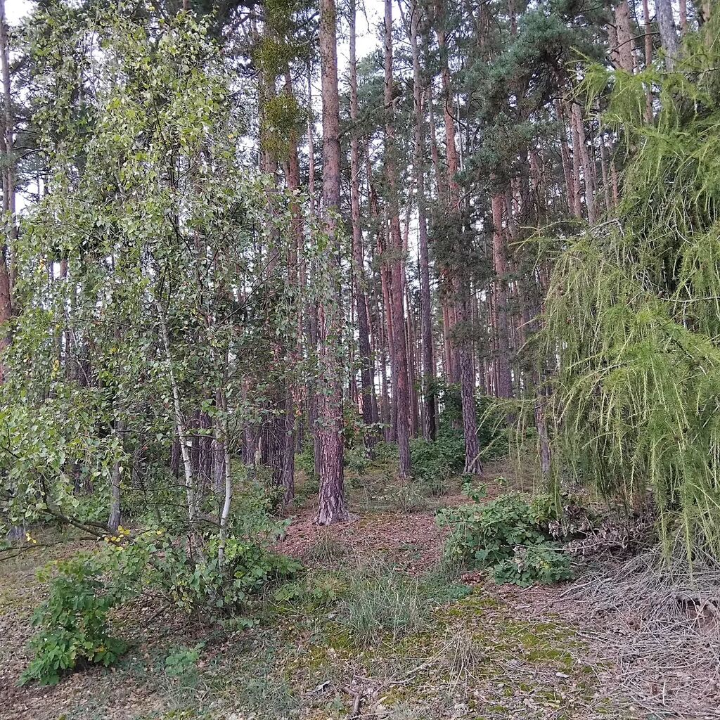 V "pohodlném" vzrostlém lese, vysazeném v roce 1940, se ukazuje i mech, rostou houby, borůvky, na kraji na jednom stromě je i jmelí, je vidět dostatečná vlhkost, nikde ale není přemokřeno. Ten les je prostě krásný a osvěžující, cítíte se v něm dobře.