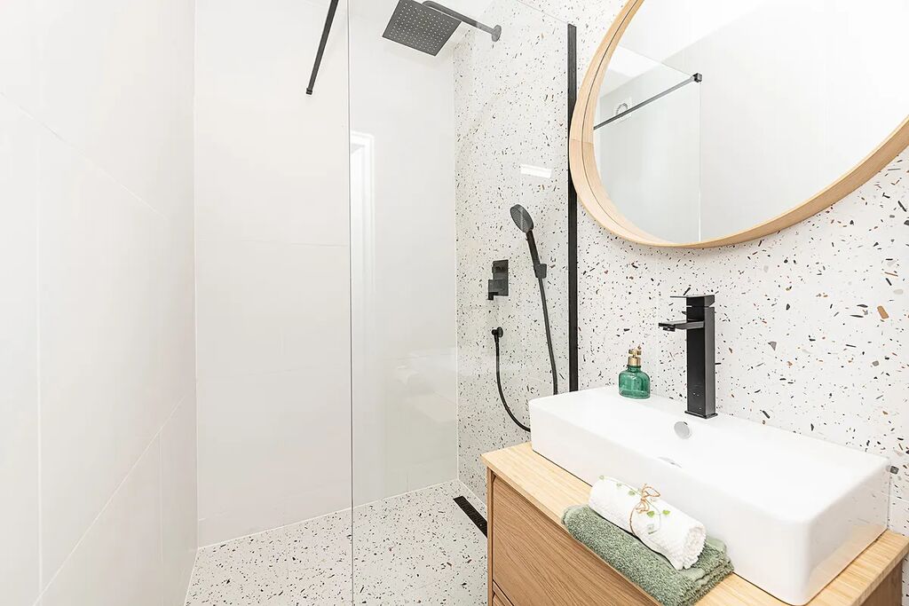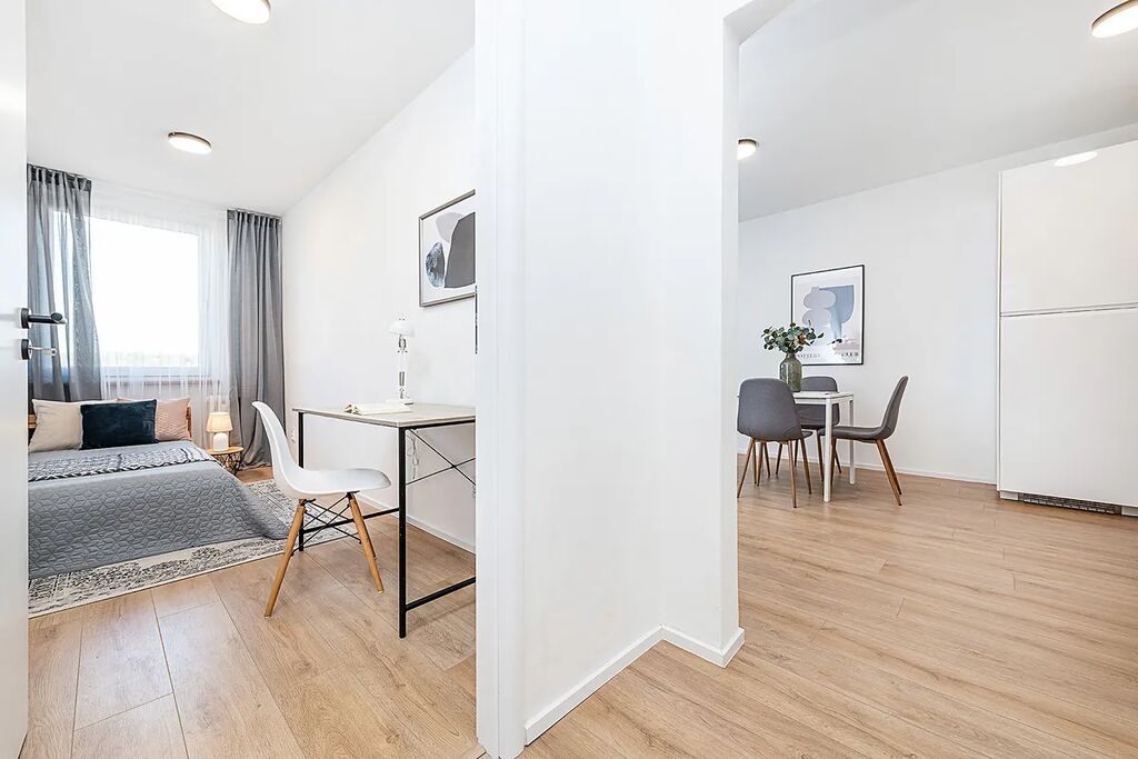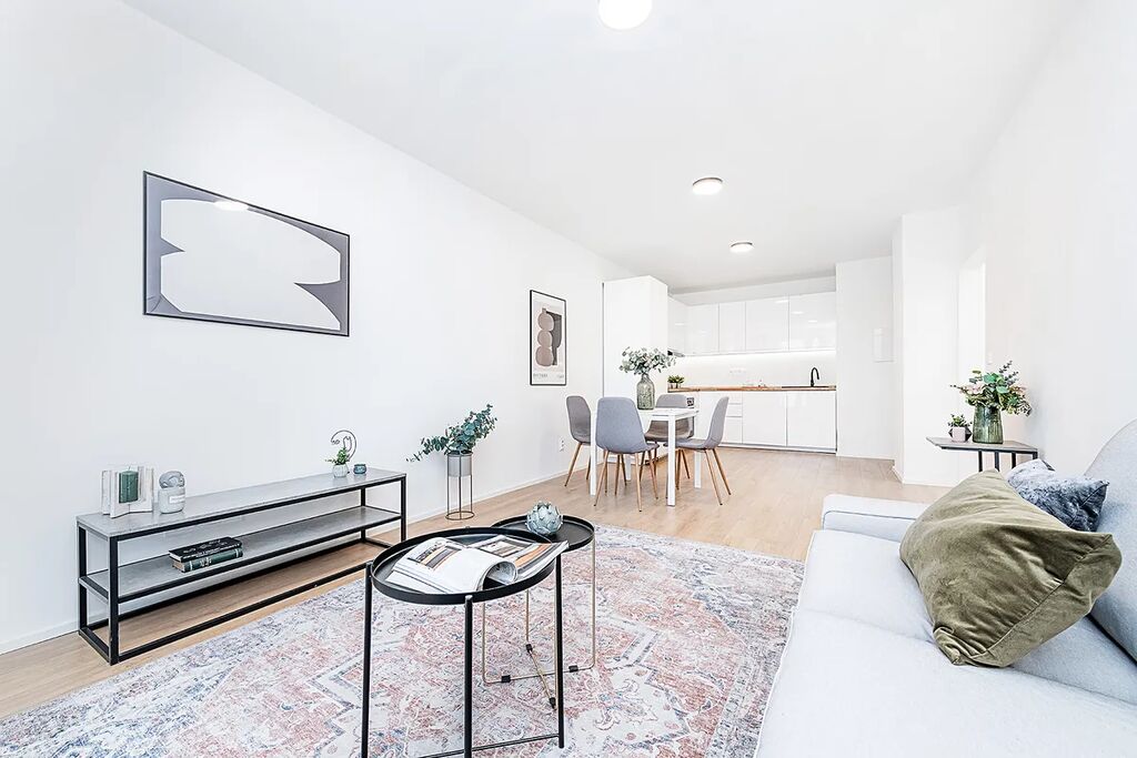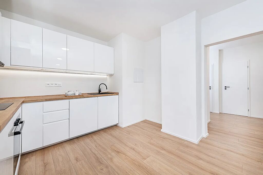 Dispozici bytu tvoří dvě neprůchozí ložnice, velkorysý obývací pokoj spojený s kuchyní, prostorná koupelna se sprchovým koutem, samostatný záchod a uzamykatelná šatna/technická místnost.