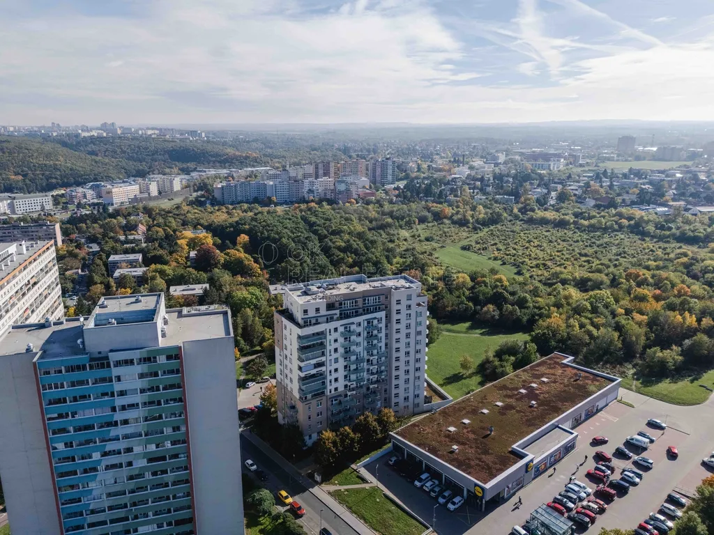 Byt se nachází v lokalitě s vynikající občanskou vybaveností, v blízkosti parků a přírodních ploch, ideálních pro volnočasové aktivity. Doprava do centra města je rychlá a pohodlná díky dostupnosti veřejné dopravy. Navíc se v blízkosti nachází budoucí stanice metra Nové Dvory, což ještě více zvyšuje atraktivitu této lokality. Obchod s potravinami Lidl 100m, autobusová zastávka 200 m, park 50 m,