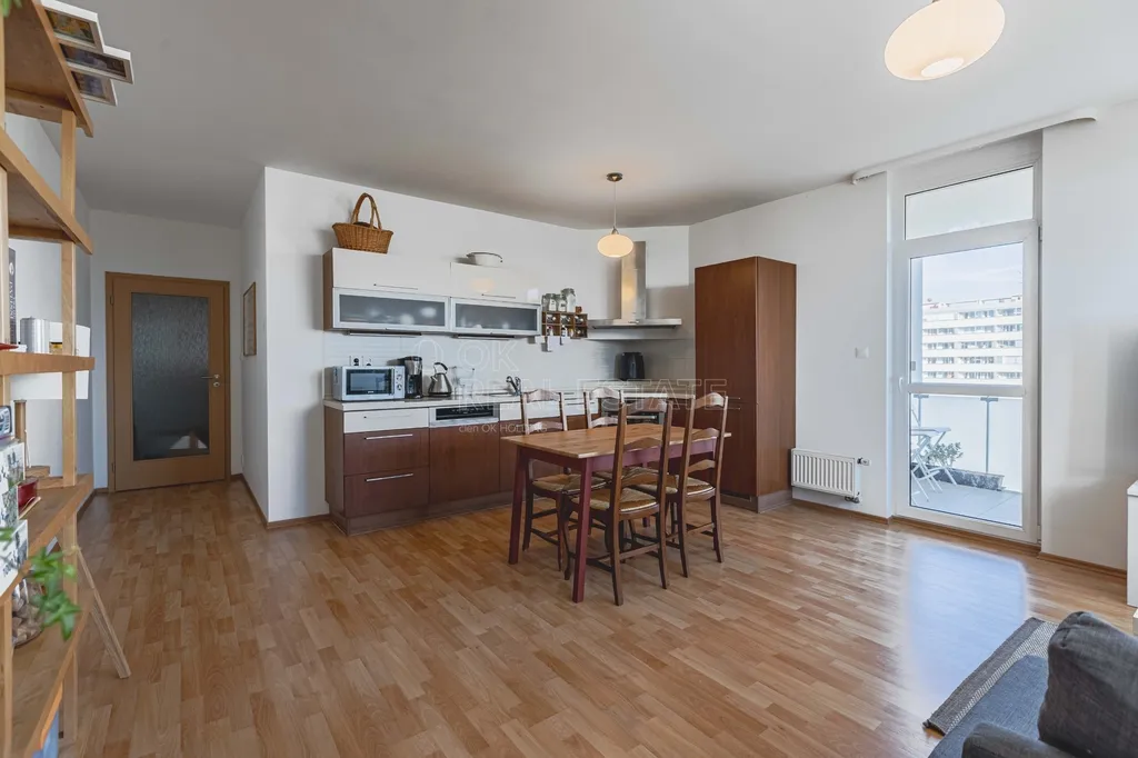 Nabízíme k pronájmu hezký a prostorný byt o velikosti 2 + kk / B, situovaný v 6. patře novostavby (2010), která se nachází v části obce Krč, Praha 4. Celková plocha bytu činí 69 m², přičemž užitná plocha je 64 m² + balkon. Byt disponuje balkónem o ploše 5,5 m², který nabízí příjemný prostor pro relaxaci a hezký výhled do parku. K bytu náleží sklep 2,5 m².