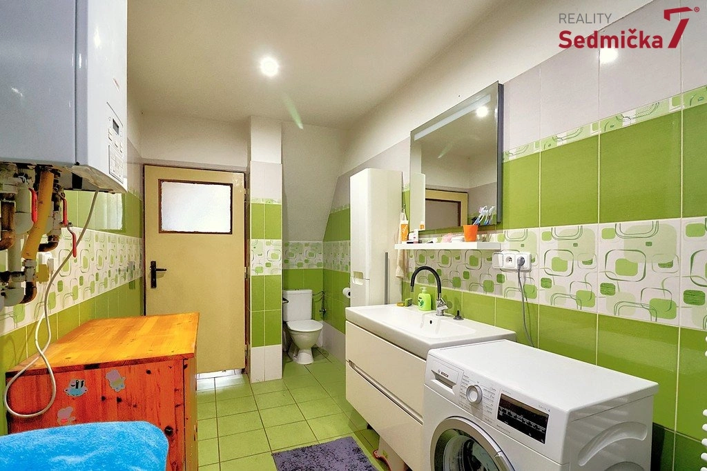 V domě je prostorná předsíň se vstupem do pokoje, kuchyně, koupelny s WC a na půdu. Z kuchyně je přístup do velkého obývacího pokoje s výhledem do zahrady. Dům je částečně podsklepený s možností půdní vestavby.